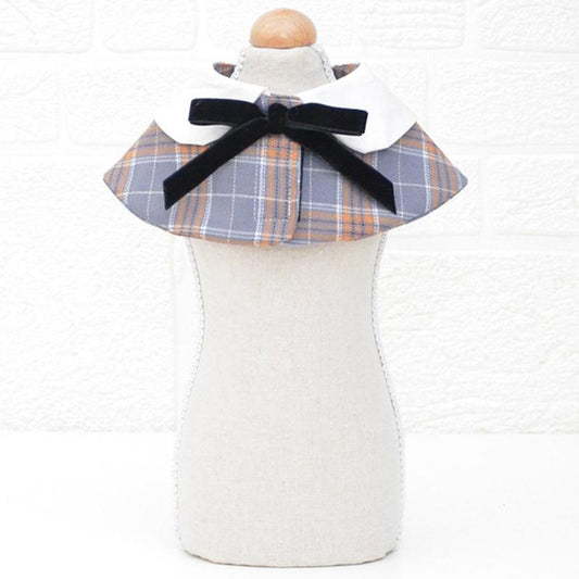 Dog Shawl Small Cloak Pet Bow Ttie Saliva Towel Pet Accessories - Size S - Gray Yellow Grid