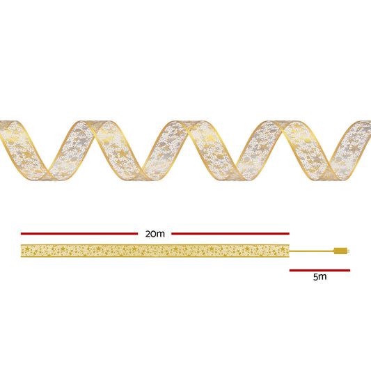 Jingle Jollys 20M Christmas Lights Fairy Ribbon Light 200 LED Xmas Decor Golden