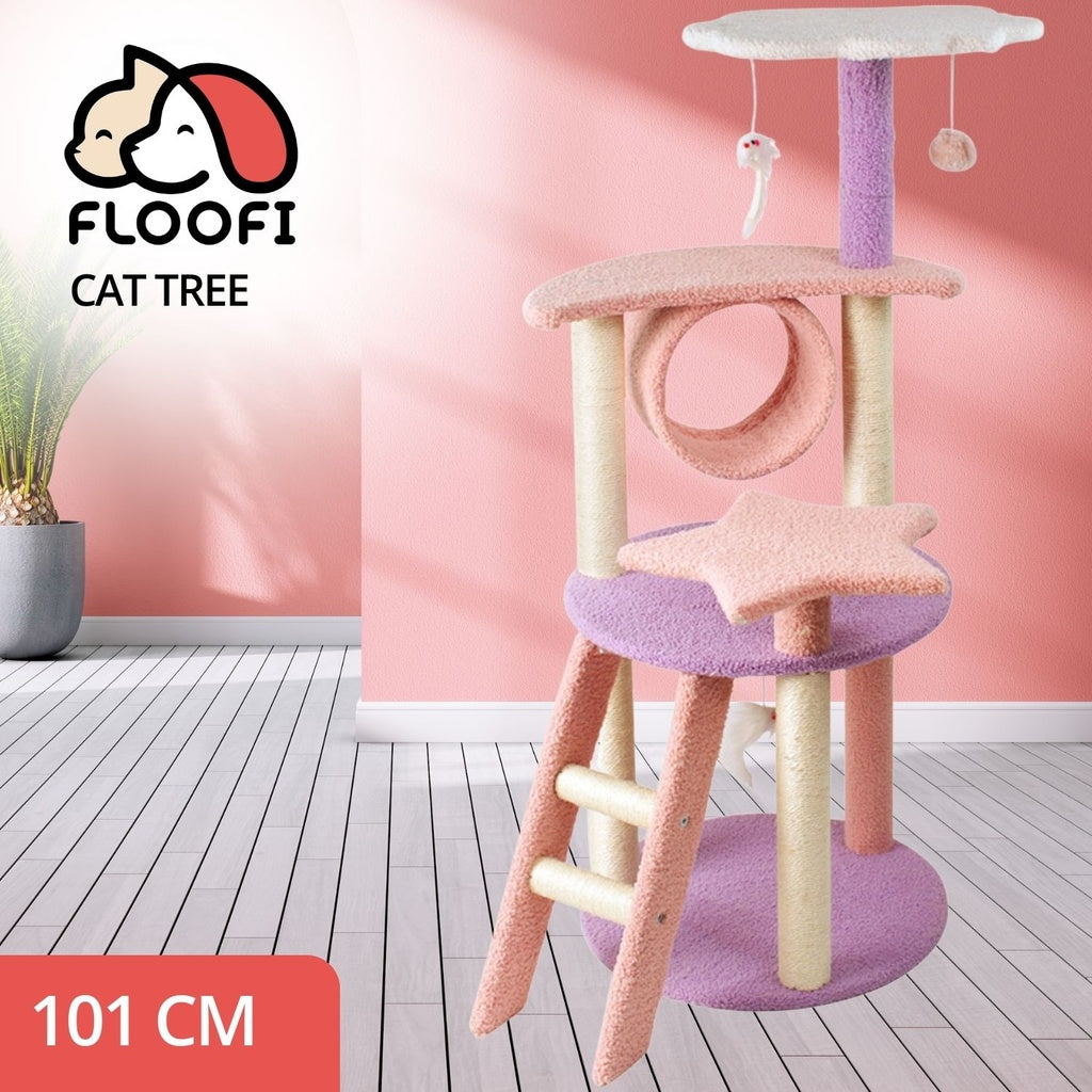 Floofi 101cm Galaxy Plush Cat Condo Cat Tree Pink Purple