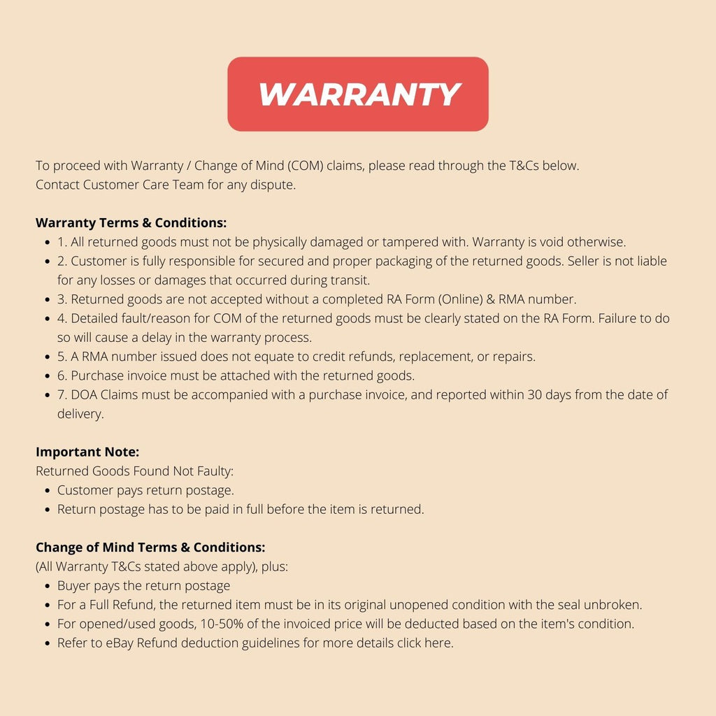 Please inspect your order upon receiving and contact us immediately if the item is defective, damaged or if you receive the wrong item, so that we can evaluate the issue and make it right.