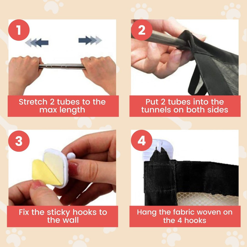 The portable folding mesh gate is the easiest and most discrete way to protect pets and toddlers all around the house. The pet gate is recommended for small pets and puppies and it can be moved from one place to another in the house when needed. The barrier safety net act as a reminder not to pass the area, therefore, it is not intended to stop a crossover.